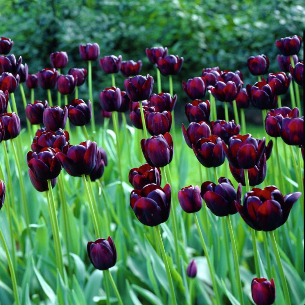 Queen of Night — морозостійкий і невибагливий сорт, який ідеально підходить для ранньої посадки. Цибулини чудово переживають холод в ґрунті, розквітають з першими теплими променями сонця. Тюльпани цього сорту можуть цвісти кількома хвилями, тішачи своєю глибиною кольору й шляхетним виглядом. Це вибір для тих, хто прагне додати саду нотку таємничості, розкоші й витонченості.