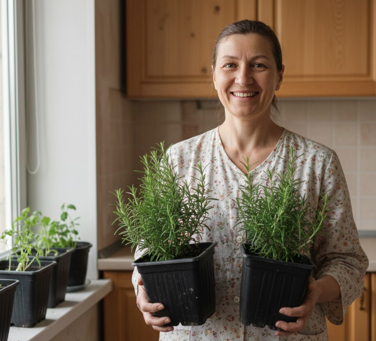 Вічнозелений розмарин у професійних горщиках П9 — це повністю готове рішення для вашої кухні чи балкону, яке не потребує пересадок. Достатньо просто дістати з горщик посилки, поставити на світле підвіконня та поливати 2–3 рази на тиждень.